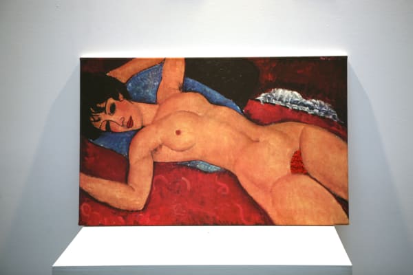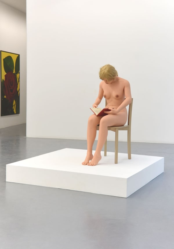 In this exhibition, he broaches the nude taboos and shows full size sex dolls in daily and familiar situations. One is reading a book and the other is crying.