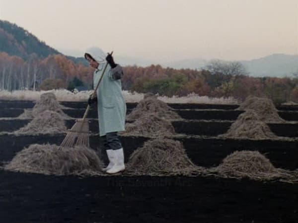 The film NÕ is presented on 16mm and depicts a husband and wife team of farmers at the close of the harvest season in Japan. Tidy piles of mulch, arranged one next to the other with minimalist precision, are dispersed by the pair, an action through which the physionomy of the field is progressively dramatically transformed. By articulating different representational genres together - the ones of NÔ-no Ikebana, landscape painting and choregraphy - Lockhart poetically describes the end of one cycle of production and the start of another. With these two works, as in her previous projects, Lockhart invites spectators in a space for self-reflection on the way they manage their attention as they encounter works of art, specifically when confronted to still and/or moving images.